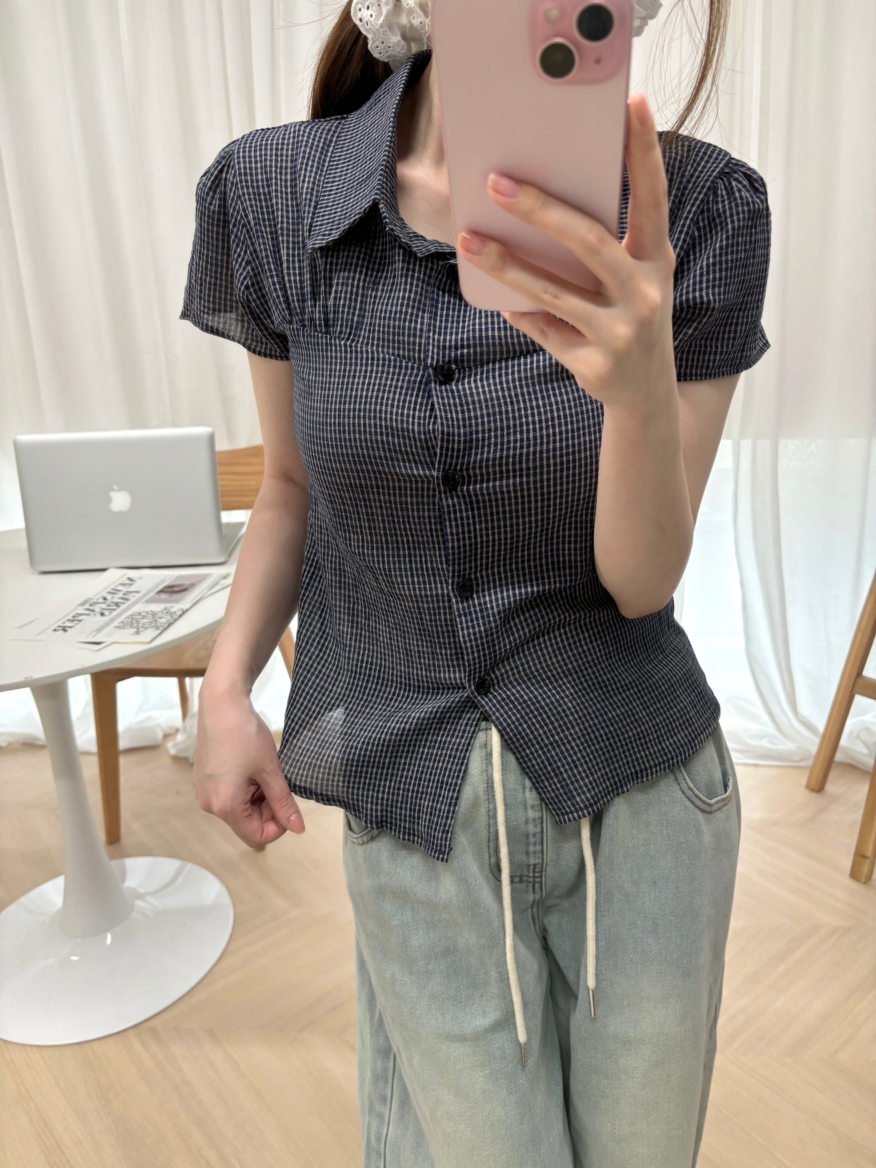 細かいチェック柄が可愛い半袖シャツ⋆꙳