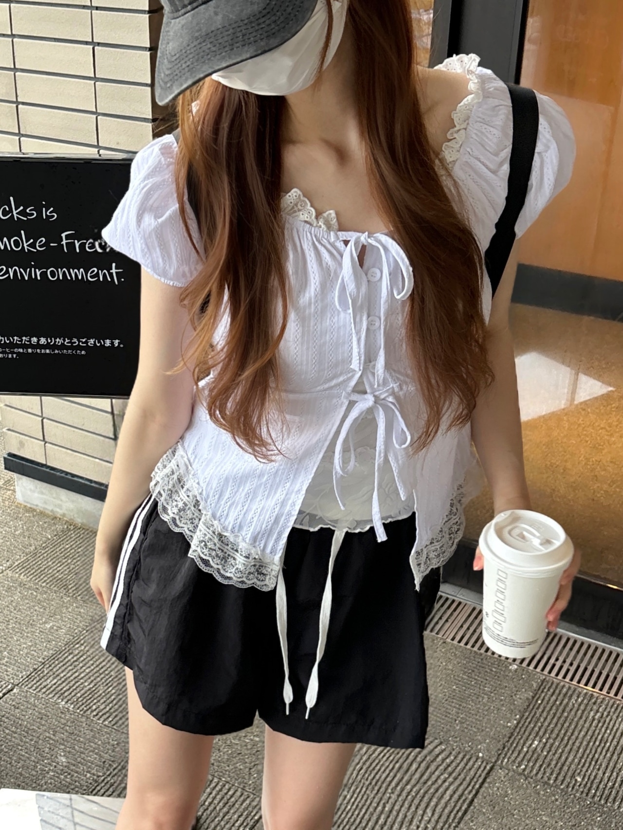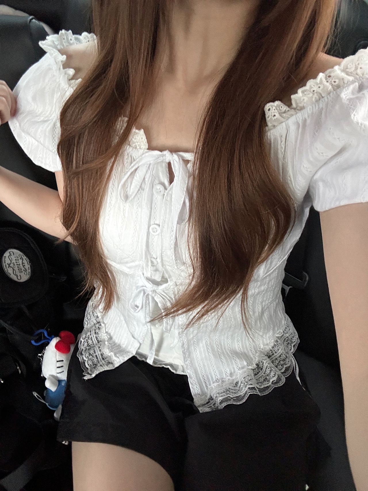 レースリボンオフショルブラウス