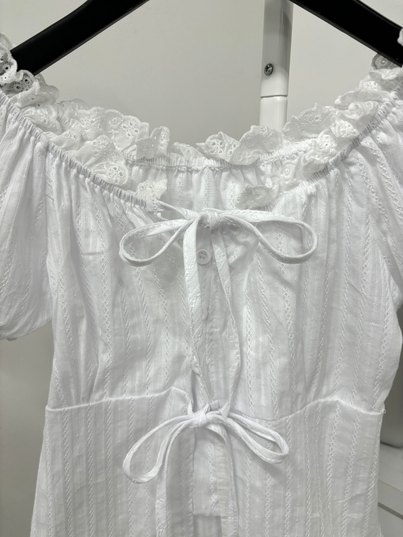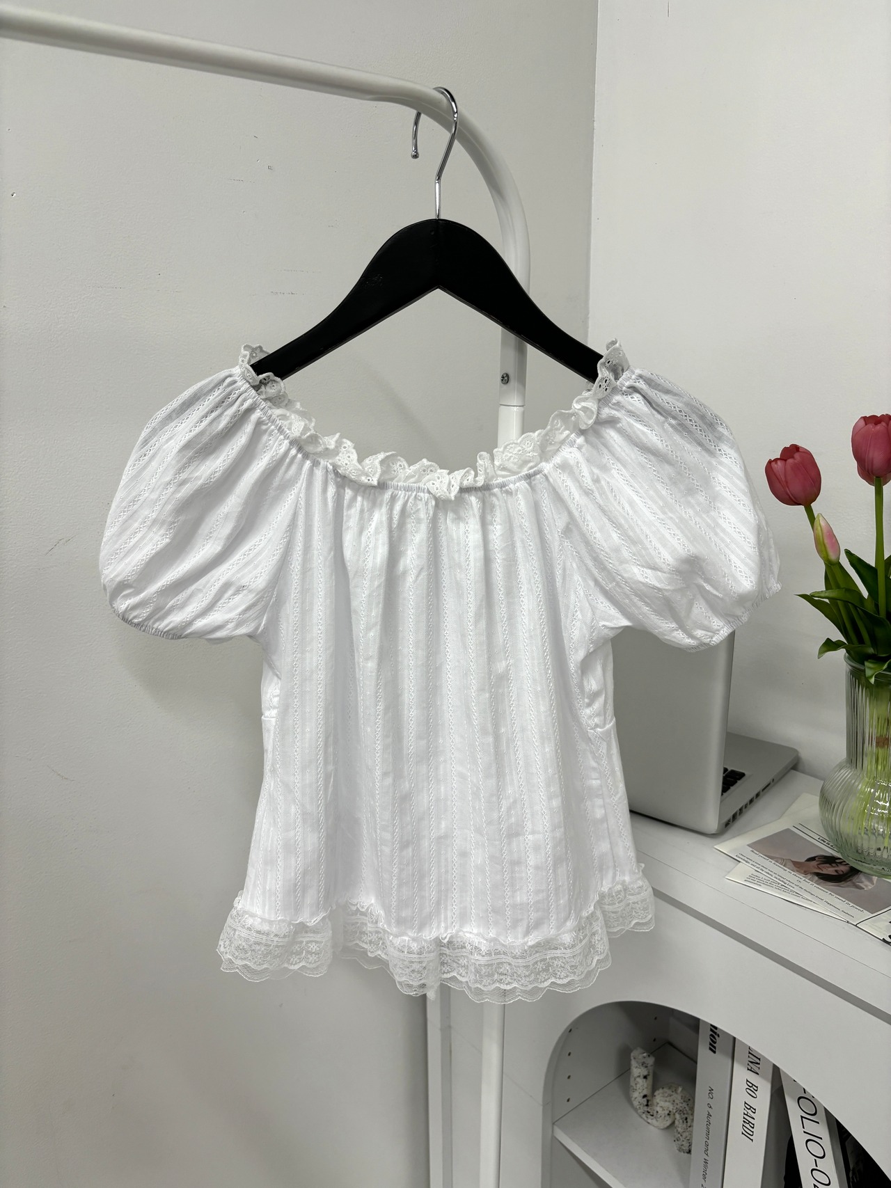 ふんわりとしたパフスリーブと、胸元&ウエストのリボンが愛らしいオフショルダーブラウス୨୧˖*
