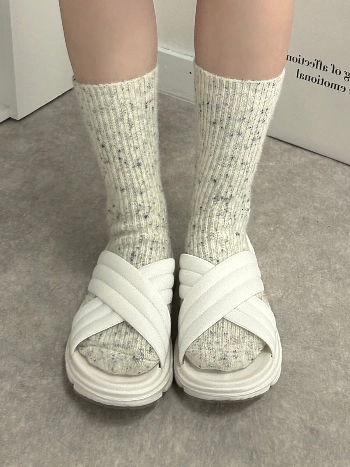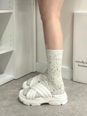 足元に軽やかなボリューム感をプラスするクロスデザインサンダル。