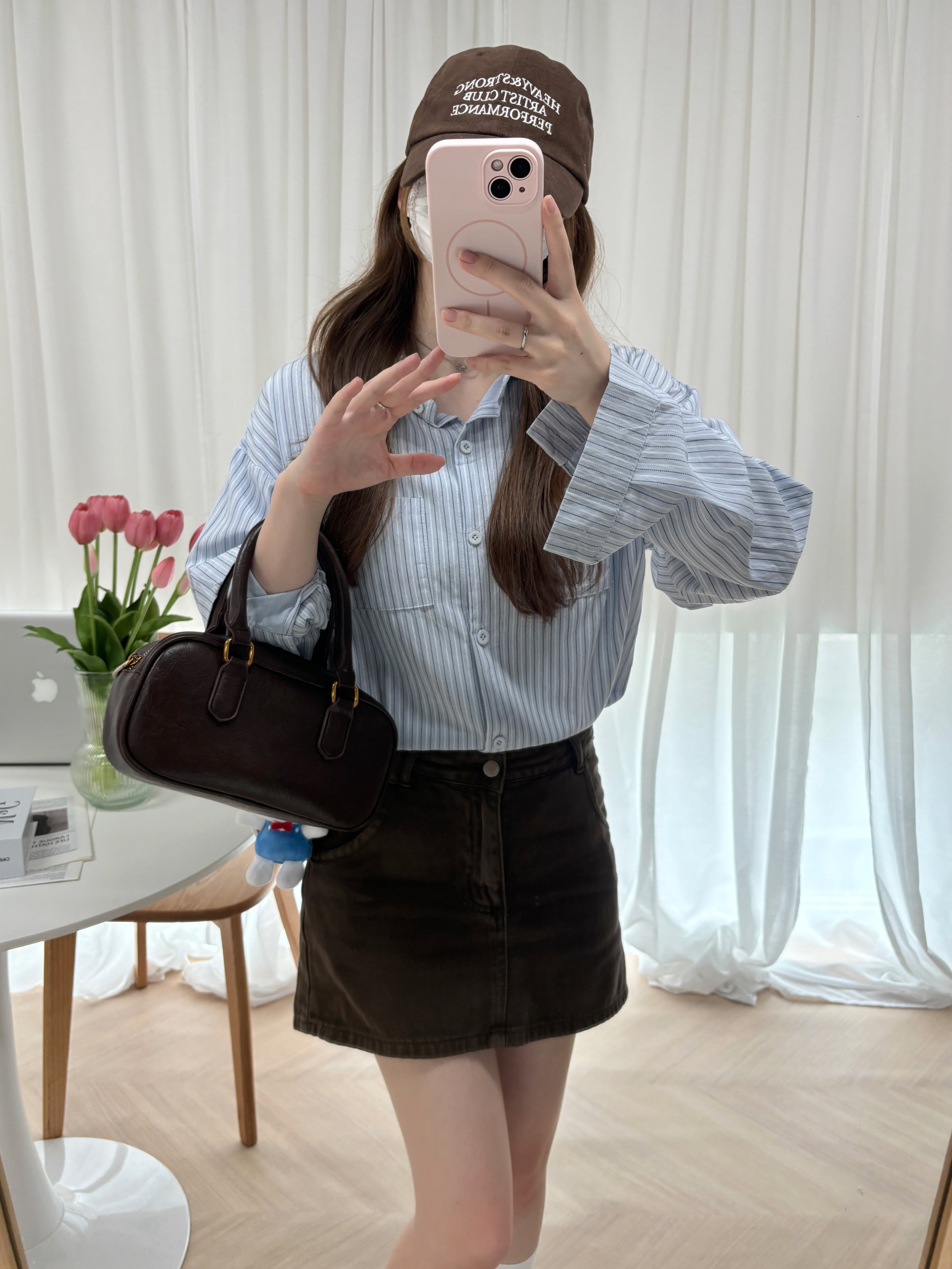 爽やかなストライプ柄が魅力の長袖シャツ。